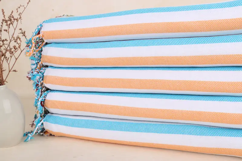 Personalized Beach Towel, Rainbow Striped, Beige, Organic Cotton, 40x71 Inches