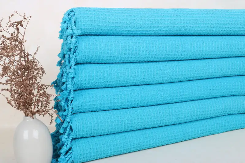 Personalized Turkish Cotton Hand Towel Turquoise Beige, 20x40 Inches