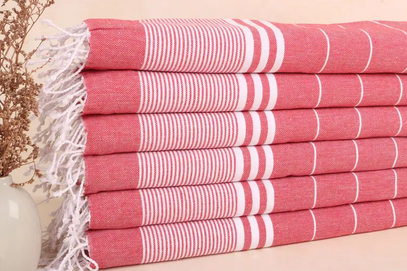 Camping Tea Towel Organic Turkish Cotton Red Striped, 24x40 Inches