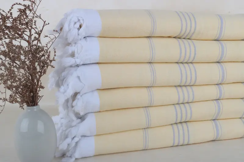 Embroidered Beach Towel Turkish Cotton Yellow Striped, 36x67 Inches