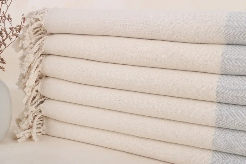 Personalized Light Gray Cotton Beach Towel, Zig Zag, 36x71 Inches