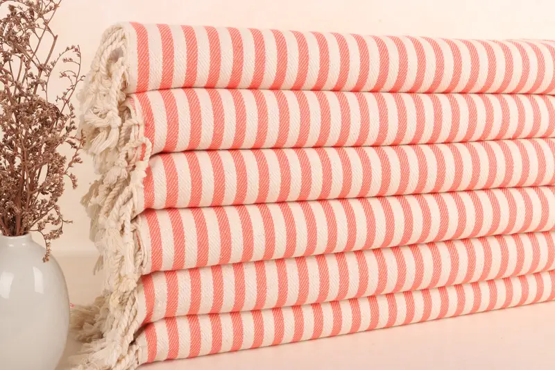 Personalized Striped Coral Cotton Dish Towel, 18x40 Inches, Organic Turkish Cotton