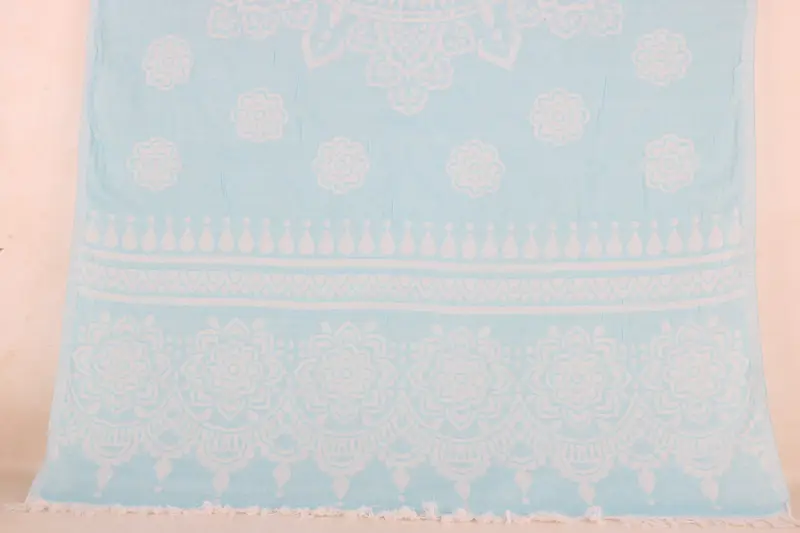 Monogram Beach Towel Floral Patterned Organic Cotton, Turquoise, 36x73 Inches