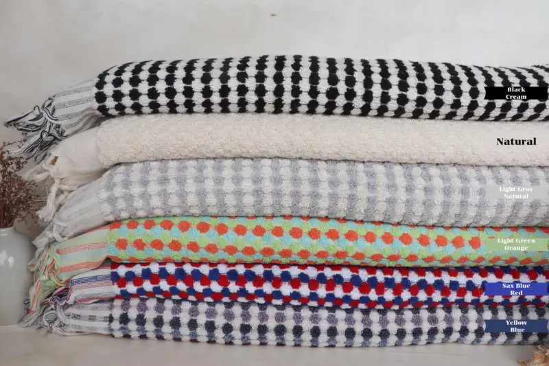Pom Pom Towel Organic Cotton Beige Bath Towel, 36x67 Inches
