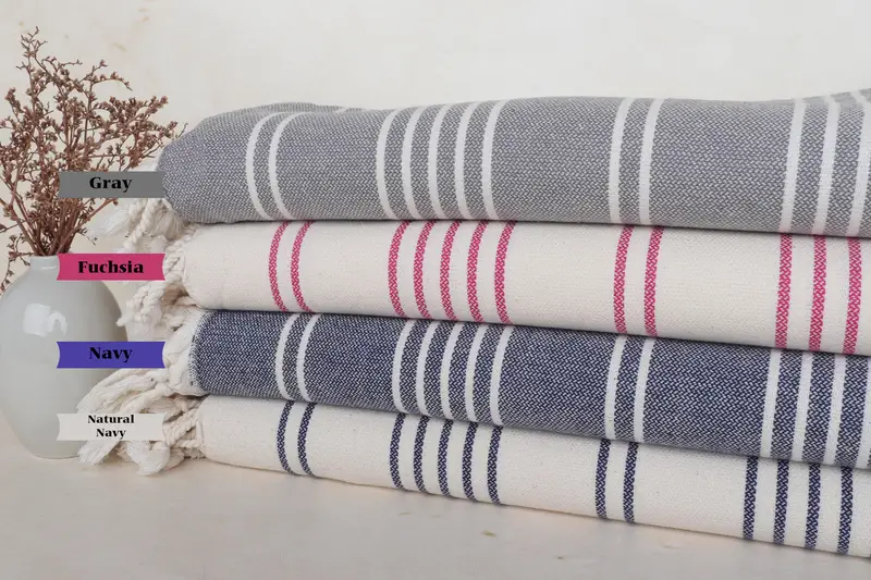 Turkish Bath Towel Striped Organic Cotton, Beige, 40x70 Inches