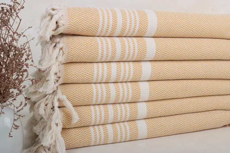Turkish Cotton Bath Towel Beige Stripes, 18x40 Inches