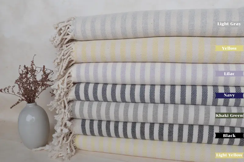 Personalized Striped Bath Towel Organic Cotton Beige, 40x71 Inches