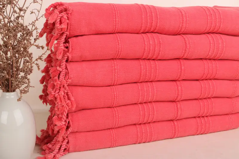 Striped Stonewashed Towel Organic Cotton Red Beige, 36x67 Inches