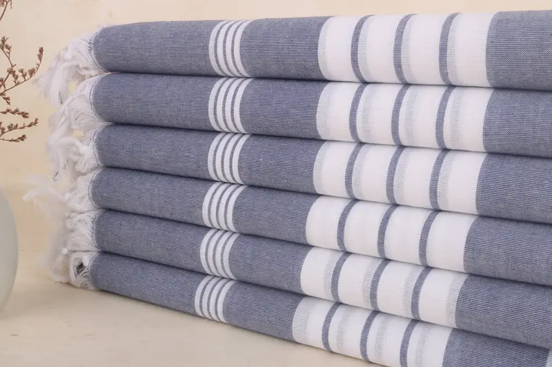 Striped Towel Organic Cotton Bath Towel, White-Navy Blue, 36x67 Inches