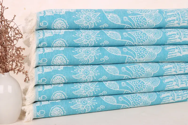 Dark Turquoise Cotton Tea Towel Italian Symbols, 20x28 Inches