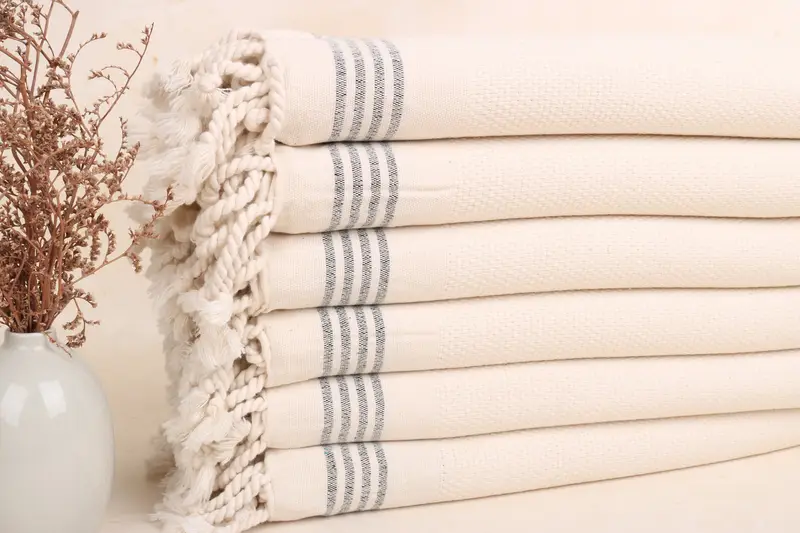 Handmade Striped Natural-Black Cotton Towel, 40x71 Inches