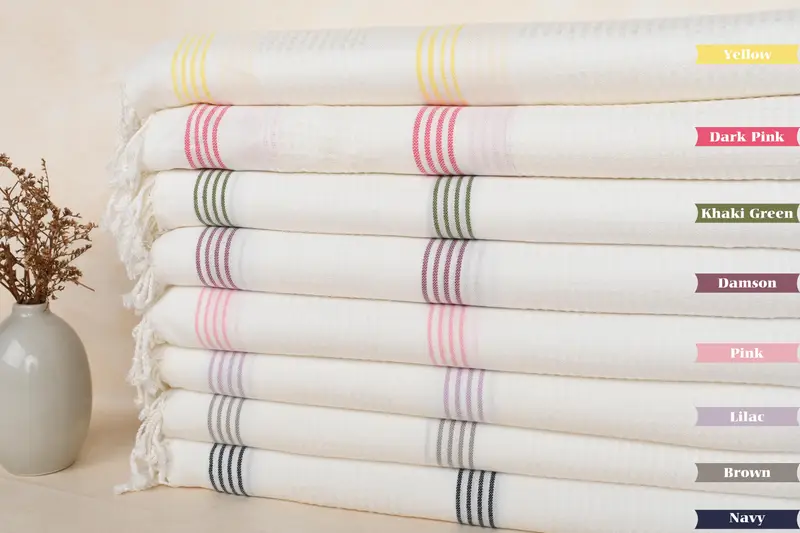 Turkish Bath Towel Organic Cotton Striped Beige, 36x67 Inches