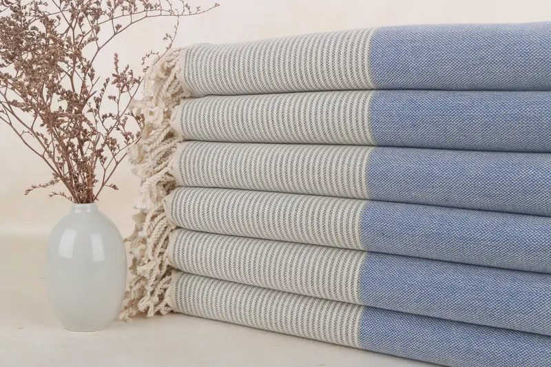 Bridal Shower Gift Turkish Towel Beach Bath Towel, Dark Gray-Sax Blue, 40x71 Inches