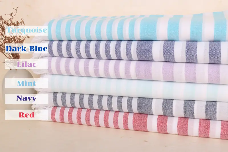 Cotton Towel Personalized Turkish Bath, Beige Stripes, Organic, 40x67 Inches