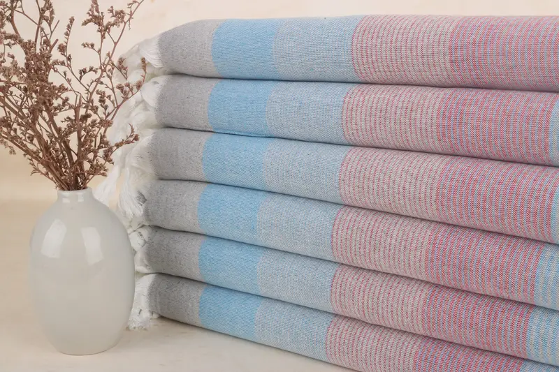 Personalized Embroidered Beach Towel Turquoise-Red Striped, 40x67 Inches
