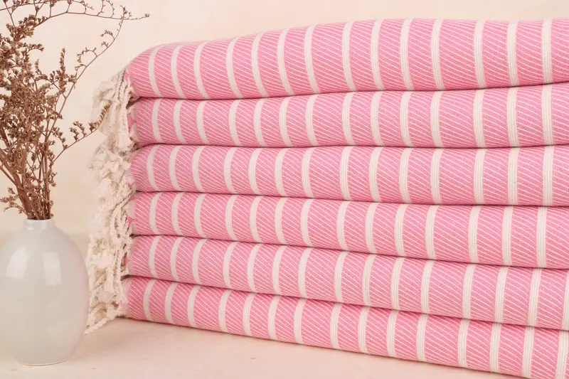 Bath Towel Pink Bamboo Herringbone, Organic Cotton, 40x71 Inches