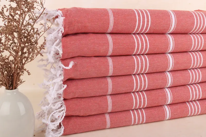 Personalized Turkish Beach Towel Dark Brick Striped, Beige, 40x71 Inches