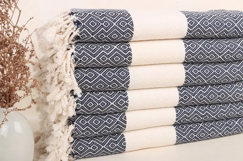 Turkish Beach Towel Personalized Navy, Diamond Pattern, 38x67 Inches