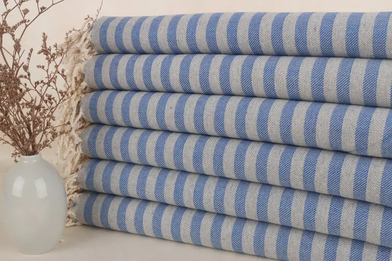 Best Friend Gift Striped Towel Blue Cotton, 36x71 Inches