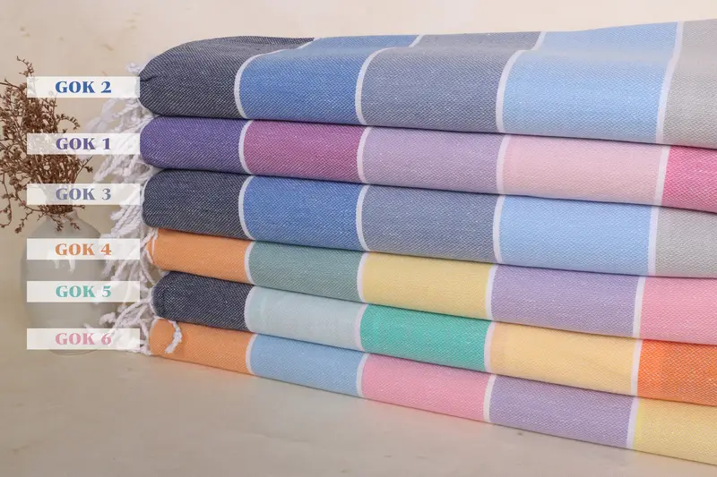 Striped Cotton Towel Organic Beige Handmade, 40x71 Inches