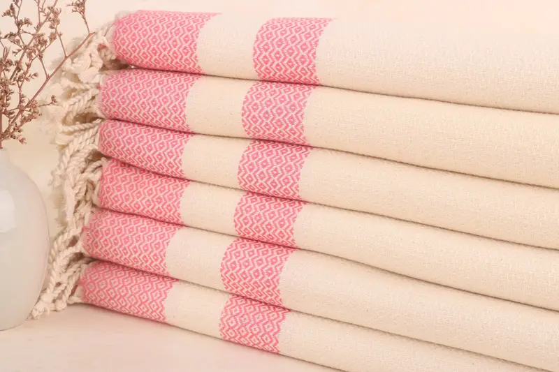 Personalized Geometric Towel Organic Cotton Pink Beige, 40x71 Inches