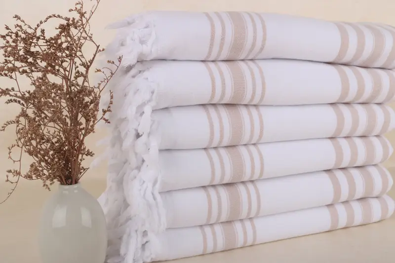 Turkish Beach Towel Beige Terry, 36x71 Inches