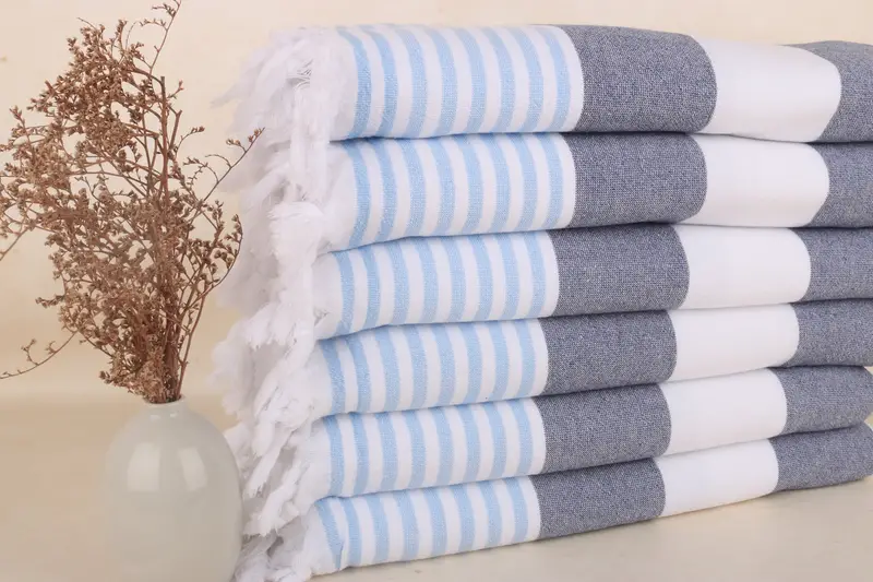 Turkish Bath Towel Navy Blue-Light Blue Striped Terry, 36x67 Inches