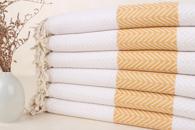 Custom Beach Towel Organic Cotton White-Mustard Chevron, 40x71 Inches