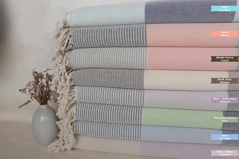 Striped Turkish Beach Towel Organic Cotton Beige, 40x71 Inches