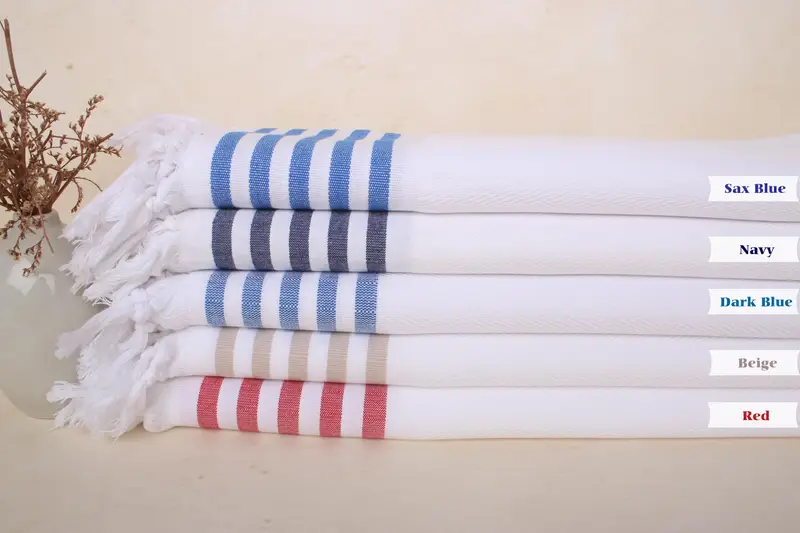 Striped Turkish Cotton Beach Towel Beige, 40x71 Inches
