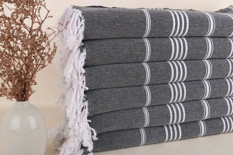 Ensuring high absorbency and quick drying, the towel fibers are made from 100% organic Turkish cotton, offering softness and lightweight properties. Resulting in a size of 40x71 inches or 100x180 centimeters, the weight of 290 grams delivers space-saving benefits while maintaining a chic appearance. Variations within a 1-2.5cm tolerance are expected due to the hand-weaving process.