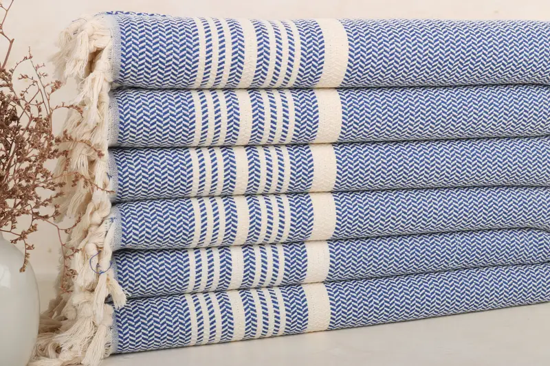 Hair Towel Turkish Tea Towels Sax Blue Striped 18x40 Inches