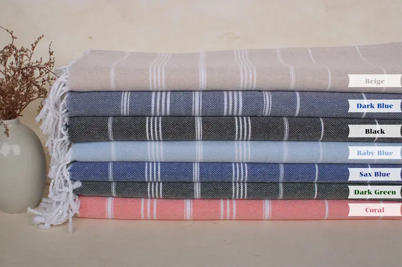 Personalized Kitchen Towel Organic Cotton, Beige, Striped, 18x38 Inches