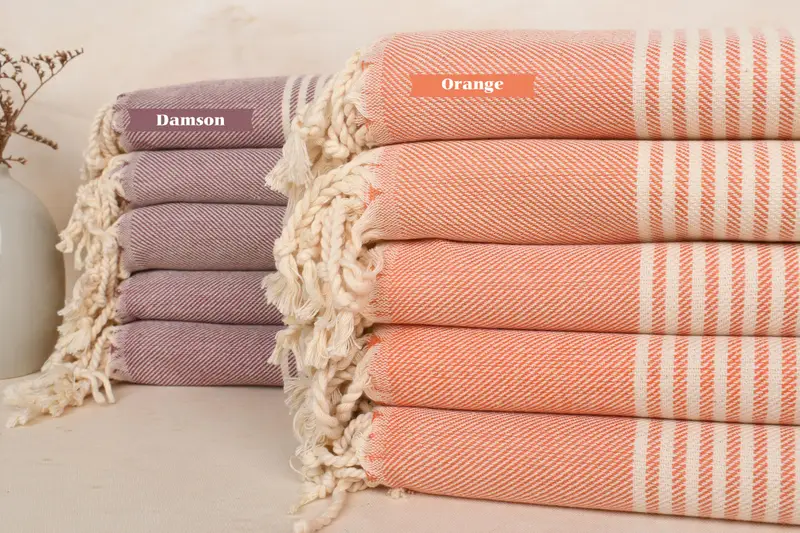 Cotton Hand Towel Monogrammed Striped Beige, 24x40 Inches