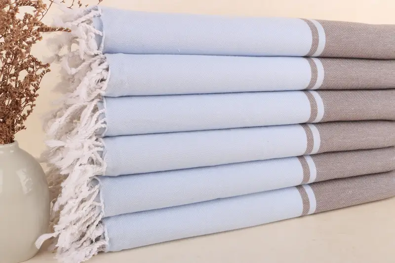 Turkish Towels, characterized by their organic Turkish cotton composition, are renowned for their exceptional absorbency and soft texture. Weaving these bath towels on hand looms ensures high-quality craftsmanship, resulting in towels that are lightweight and space-efficient. Each towel weighs 280 grams and measures 40x71 inches (100x180 cm), with possible slight variations due to their handmade nature.