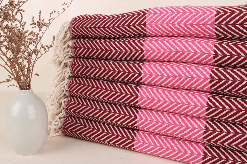 These towels are characterized by their construction from 100% organic Turkish cotton, ensuring superior absorbency and comfort. They are meticulously hand-woven on traditional looms, resulting in towels that measure 40x71 inches (100x180 cm) with a slight variance of up to 1-2.5 cm due to their artisanal nature. Each piece is designed to weigh 450 grams, balancing lightweight convenience with durability.