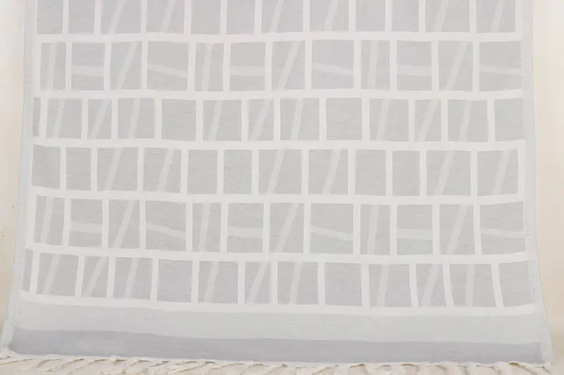 Characterized by its fiber composition, the product is fabricated from 100% organic Turkish cotton, ensuring superior absorbency and softness. Weighing 360 grams and measuring 34x69 inches (85x175 cm), the towel exhibits a slight hand-weaving tolerance of 1-2.5 cm. Resulting in a delicate, high-quality finish, each piece adheres to precise dimensions, maintaining uniformity despite manual crafting.