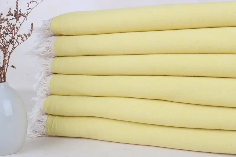 Characterized by 100% organic Turkish cotton, the towels ensure breathability and high absorbency, making them suitable for various uses. Weighing 314 grams, these towels measure 36x67 inches or 90x170 cm with slight variations due to hand-weaving. Resulting in a lightweight yet durable product, the towels are quick-dry and space-efficient.