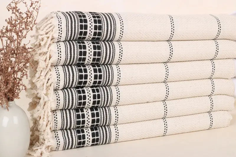 The linen dish towel, constructed from 100% organic Turkish cotton, ensures superior absorbency and quick drying. Characterized by a weight of 120 grams and dimensions of 20x40 inches or 50x100 cm, these towels may vary slightly due to the hand-weaving process, typically by 1-2.5 cm. Custom embroidery options are available upon request, allowing personalization with names, logos, and dates. Prior to the first use, it is recommended to wash the towels to pre-shrink them. The towels are designed for various uses, including gym, kitchen, and as pe...
