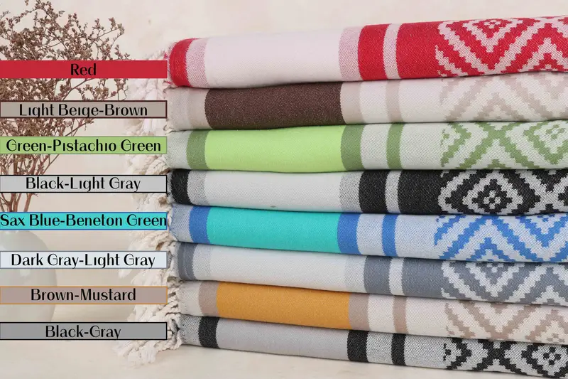 The Turkish Beach Towels are woven using 100% organic Turkish cotton, ensuring superior absorbency and softness. Each towel measures 36x69 inches or 90x175 centimeters and weighs 420 grams, with a tolerance of 1-2.5 cm due to their handmade nature. Orders can be customized with embroidery, including names, logos, dates, and initials, along with specific embroidery colors and font choices. Towels must be washed before initial use and can be air-dried or tumble dried on a low setting. Shipping typically takes 3-5 days within the US and 2-4 days i...