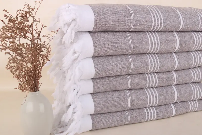 The product is characterized by its 100% organic Turkish cotton composition, ensuring durability and superior absorbency. Measuring 70x36 inches or 90x180 cm, the towels are handmade with a tolerance of 1-2.5 cm. Their lightweight nature, at just 0 grams, and soft texture result in an easy-to-transport, space-saving option.