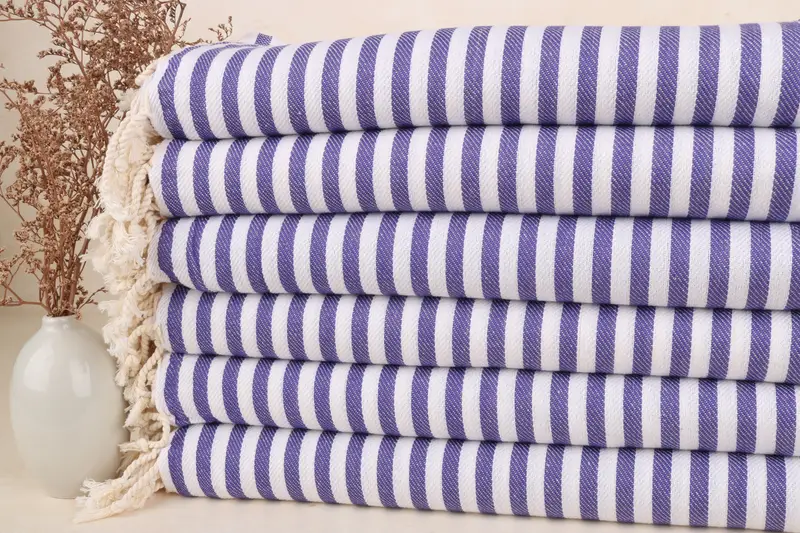 Striped Towel Handmade Bath Towel Purple Beige 40x71 Inches