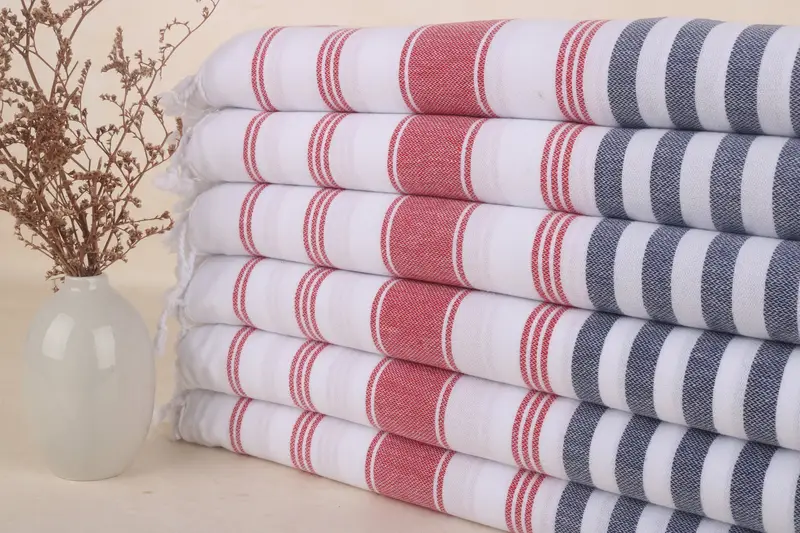 Handmade Striped Bath Towel Navy Blue-Red Beige, 40x71 Inches