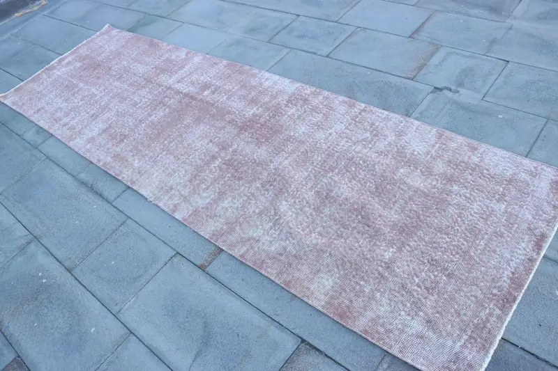 2.9x9.6 ft Turkish Rug, Vintage Rug, Pink Check Wool Rug