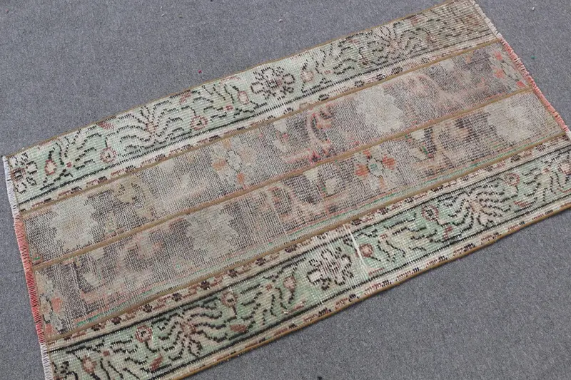 Turkish Rug, 2.3x4.4 ft Small Vintage Rug, Green Brown Oriental Rug