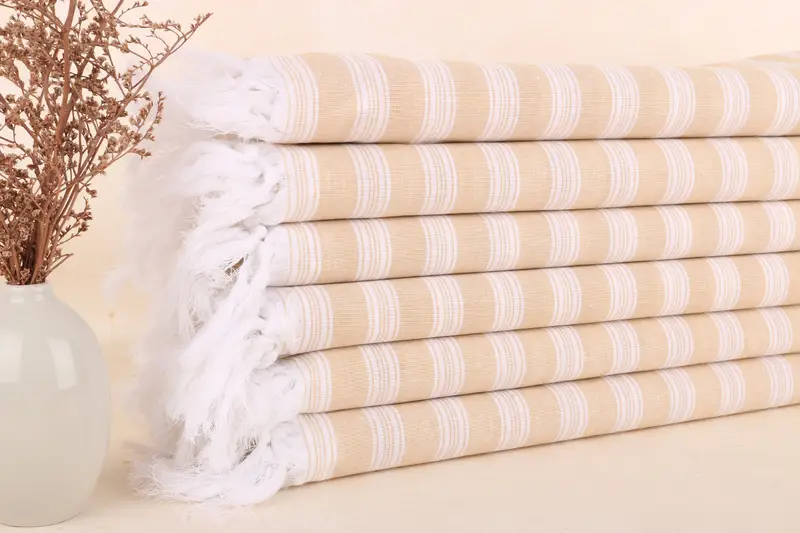 Custom Turkish Towel Personalized Gift Mustard Striped, Beige, 40x71 Inches