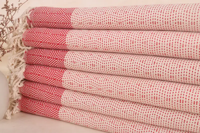 Custom Turkish Towel Monogrammed Red Diamond 40x71 Inches