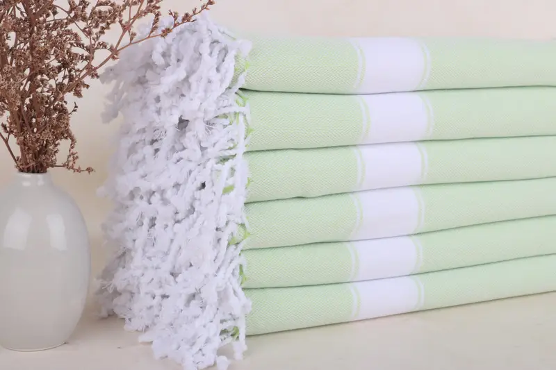 Turkish Bath Towel Organic Cotton Pistachio Green Stripe, 40x71 Inches