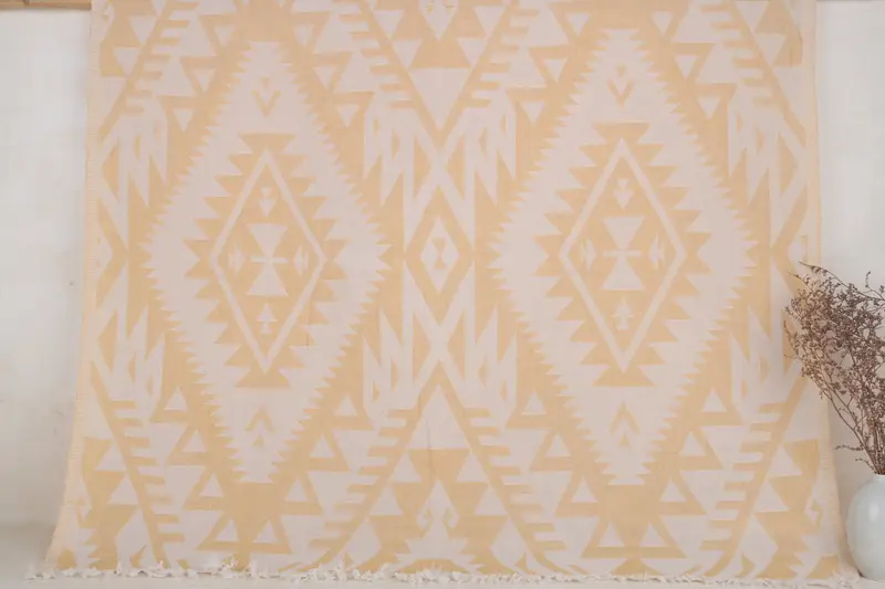 Personalized Mustard Geometric Towel Turkish Cotton, 40x75 Inches