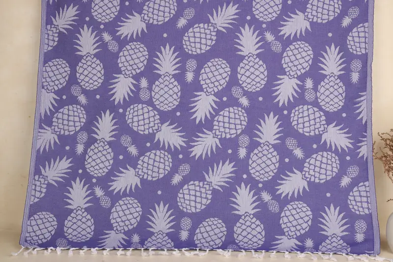 Turkish Bath Towel Organic Cotton Purple Pineapple Patterned, 36x71 Inches